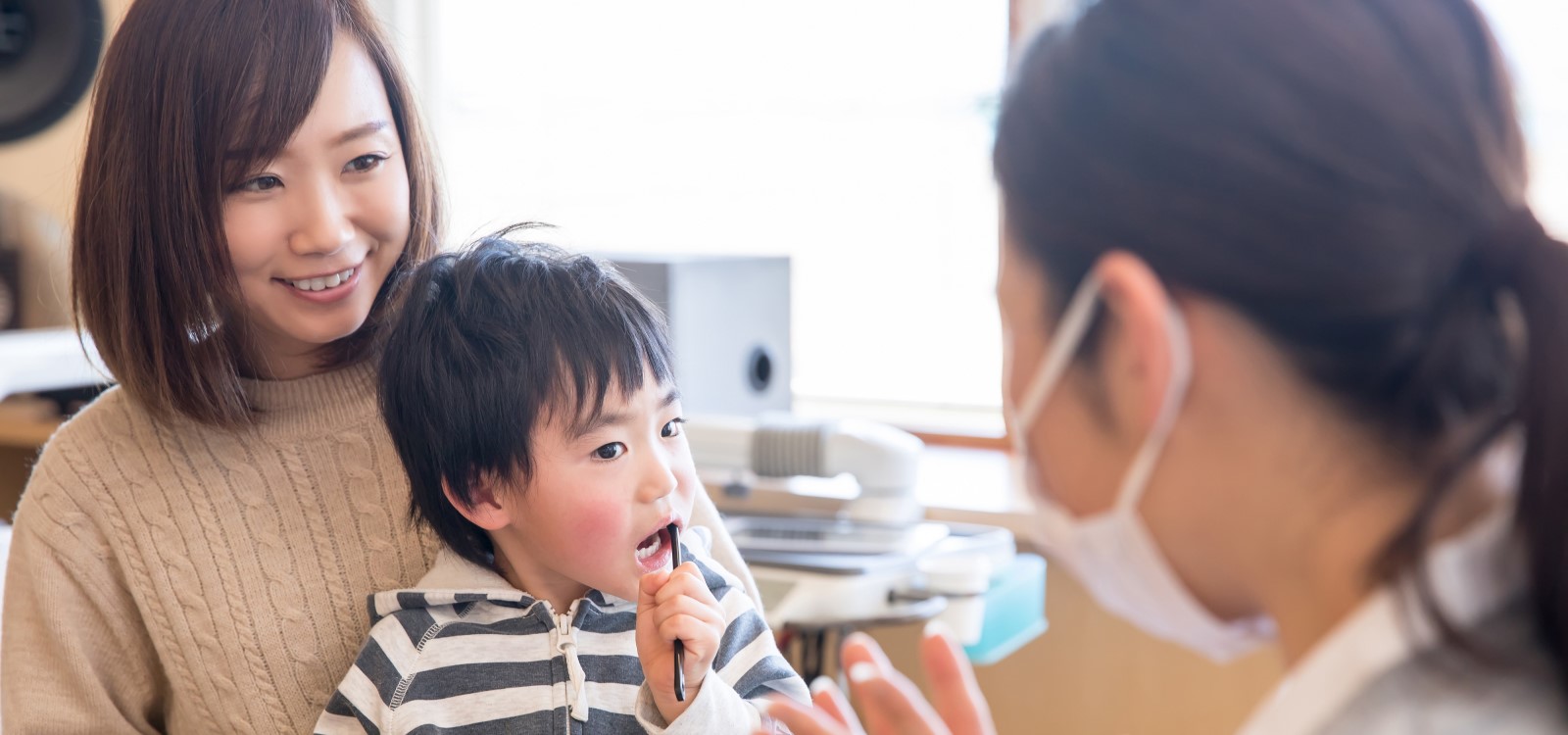 当院では、小さいお子さんとその親御さんに楽しく通いやすい歯科医院をめざし、「ママとこどものはいしゃさん」を始めました。